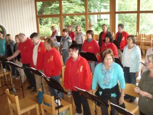 Den Schwerpunkt der Probenarbeit hatte Chorleiterin Erika Wagner auf das Einstudieren der choreografischen Elemente gelegt. Darüber hinaus wurde nochmals intensiv an der Konzertliteratur gearbeitet und der letzte Feinschliff vorgenommen. Am Samstag waren auch Leila Sulyok und Hans-Otto Mantsch vor Ort. Sie übernehmen die instrumentale Begleitung beim Jubiläumskonzert der "Stimmgabel". In der gemeinsamen Probe wurde konzentriert gearbeitet und vor allem schwierige Passagen und Übergänge mehrfach wiederholt, um diese zu festigen. Erika Wagner zeigte sich mit dem Ergebnis der Chorfreizeit sehr zufrieden und lobte den Chor für seinen Einsatz.Die Geselligkeit kam ebenfalls nicht zu kurz. Für den Freitagabend hatte Judith Stoll anlässlich der Jubiläums-Chorfreizeit ein "Ratequiz" zusammengestellt, bei dem knifflige Wissens- und Schätzfragen aus dem Chorgeschehen der letzten 10 Jahre gelöst werden mussten. Gerhard Thumser präsentierte am Samstagabend eine "Hitparade" mit den 10 beliebtesten Schlagern und Volksliedern der Stimmgabel-Mitglieder. Hierzu hatten die Sängerinnen und Sänger schon vor einiger Zeit ihre Wunschzettel mit jeweils sechs Liedvorschlägen bei ihm eingereicht. Anhand der eingegangenen Rückmeldungen hatte Gerhard Thumser nicht nur die Top-Ten ermittelt, sondern darüber hinaus auch noch ein Liederheft mit etwa 35 Liedtexten der zumeist gewünschten Titel zusammengestellt. Klar, dass daraufhin noch bis spät in die Nacht gesungen und geschunkelt wurde. Erika Wagner sowie einige Sänger hatten vorsorglich ihre Instrumente von zuhause mitgebracht und begleiteten die unermüdlichen "Stimmgäbler" beim Singen.