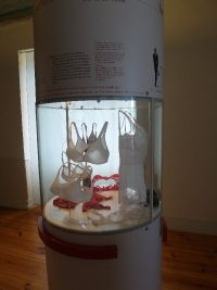Einen Stock tiefer, im Miedermuseum des Heubacher Schlosses, wird in einer außergewöhnlichen Sammlung gezeigt, was Frauen in den letzten zwei Jahrhunderten „drunter“ getragen haben, um der jeweils vorherrschenden Mode zu entsprechen. Und so gibt es vom Spitzenhöschen über Büstenhalter und körperformende Korsetts bis hin zum modernen Push-up BH alle möglichen Wäschestücke in der Ausstellung zu sehen.