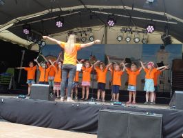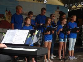 Die Kids strahlten mit der Sonne um die Wette und begeisterten mit einem erfrischend unbekümmerten und fröhlichen Auftritt. Es folgten der Jugendchor „Fermate“ unter der Leitung von Marion Weiß sowie der Chor „Stimmgabel“ mit Chorleiterin Erika Wagner. Gregor Wohak begleitete die Sängerinnen und Sänger souverän und schwungvoll auf dem E-Piano. Natürlich durfte auch ein gemeinsamer Auftritt aller Ensembles beim Schlehenfest nicht fehlen. Für den Titel „Ich wollte nie erwachsen sein“ aus dem Musical „TABALUGA“ gab es denn auch viel Applaus für die Akteure auf der Showbühne.