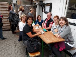 In der Besenwirtschaft war für uns ein gemütlicher Platz im Nebenzimmer reserviert, wo man sich erst einmal mit gutem Wein und leckerem Essen, wie Schweinesteak und –bäckle sowie Wurstsalat, stärkte. Als Erika Wagner dann die ersten Töne mit Ihrem Akkordeon anstimmte, war kein Halten mehr. Es wurde mit viel Einsatz das eine oder andere Volkslied gesungen und der gesamte Besen unterhalten. Als ein Besengast meinte „Chorgesang hätte er sich anders vorgestellt“, lies es sich der Chor nicht nehmen „We shall overcome“ und „Rock for fun“ aus seinem Repertoire zum Besten zu geben. Nun war auch der letzte Besengast überzeugt und es wurden sogar Liedwünsche anderer Gäste erfüllt. Am späten Abend trat die Gruppe wieder die Heimreise mit S-Bahn und Bus an. Danke an Kurt Steimer für die Organisation des tollen Ausfluges. Alle Teilnehmer waren sich einig: „Das muss unbedingt wiederholt werden“!