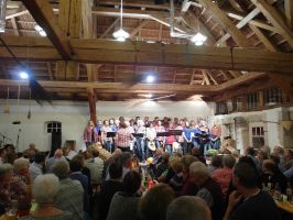 Der Chor „Stimmgabel“ unter der Leitung von Erika Wagner unterhielt im ersten Teil unter anderem mit bekannten schwäbischen Volksliedern wie „Mädle, ruck...!“, „Heut kommt der Hans zu mir“ oder „Auf der schwäbsche Eisebahne“.