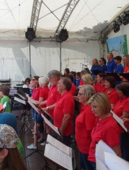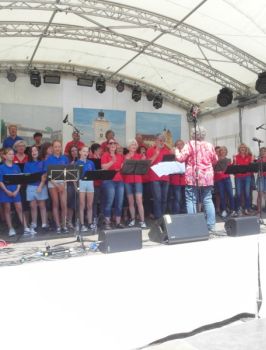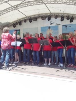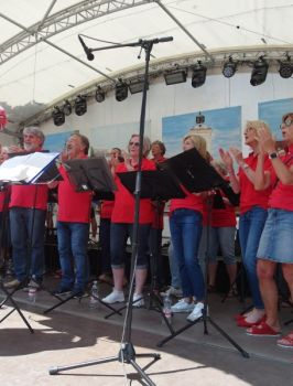 Ein großes Lob an alle Sängerinnen und Sänger, die trotz der Hitze, tapfer auf der heißen Bühne durchgehalten haben. Dankbar wurde daher auch das kühle Mineralwasser angenommen, das seitens der ARGE schon im Vorfeld für die Akteure am Bühnenrand bereitgestellt worden war.