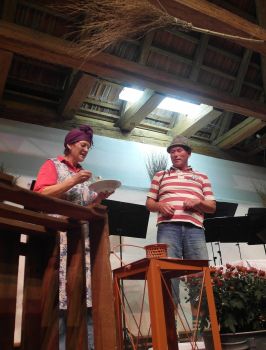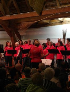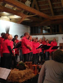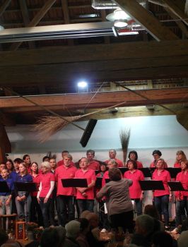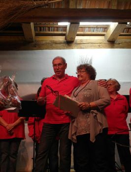 Der Chor „Stimmgabel“ unter der Leitung von Erika Wagner unterhielt im ersten Teil unter anderem mit bekannten Country- und Westerntiteln. Diese Stücke wurden von einem Gitarren-Trio begleitet, was richtiges Country-Feeling vermittelte. Gleich zu Beginn des zweiten Programmteils gab es eine Überraschung. Erika Wagner, die an diesem Abend das letzte Mal ihren Chor dirigierte, wurde von ihren „Stimmgäblern“ mit einem umgetexteten Lied auf die Melodie „Im Wagen vor mir fährt ein junges Mädchen“ überrascht und von den beiden Vorsitzenden Dieter Waller und Bettina Hornek offiziell verabschiedet. Nach 21 Jahren gibt sie das Dirigat an zwei junge Kolleginnen ab, die fortan den Chorbetrieb übernehmen. Sichtlich gerührt nahm die scheidende Chorleiterin die guten Wünsche und Geschenke entgegen und dirigierte anschließend in gewohnt engagierter Weise die restlichen Liedbeiträge an diesem Abend. Auch Vizedirigentin Christine Ringwald übernahm einen kleinen Part.