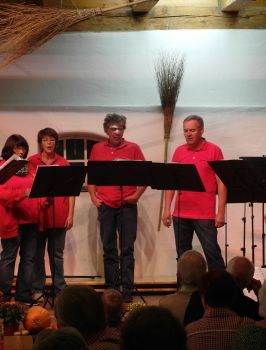Zwischen den Programmblöcken gab es kleine Einlagen aus den Reihen der „Stimmgabel“. Sie präsentieren das „Maultaschen-Lied“ und parodierten überdies noch das tragische Schicksal vom „Hahn von Onkel Giacometo“.