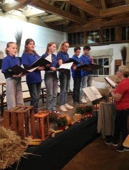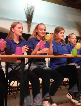 Der Jugendchor „Fermate“ unter der Leitung von Marion Weiß erhielt in seinem Programmblock insbesondere für den „Cup-Song“ viel Applaus. Neben dem Singen muss hier nämlich auch noch rhythmisch mit Bechern auf einen Tisch geklopft werden – gar nicht so einfach! Begleitet wurden die Ensembles an diesem Abend von Elena Rasschiwina am E-Piano.