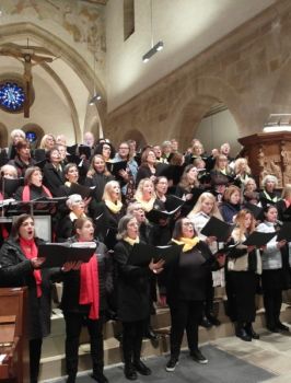 Mit einem großartigen Schlusschor, bei dem alle beteiligten Chöre zusammen im Chorraum der Klosterkirche standen, endete das Friedenskonzert. Und als die beiden Schlusslieder „Von guten Mächten“ und der Kanon „Dona nobis pacem“ erklangen, war das schon äußerst beeindruckend und setzte einen wunderbaren und passenden Schlusspunkt an diesem Konzertabend.