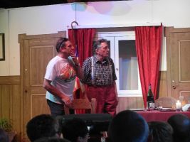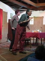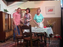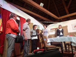 Die Theatergruppe agierte schwungvoll mit passender Mimik, viel Spielwitz und spritzigen Dialogen.Durch die direkte Nähe zum Publikum sprang der Funke sofort über und die Akteure wurden von der Begeisterung der Gäste regelrecht getragen.