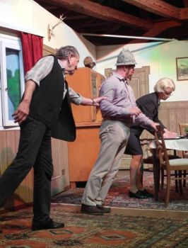 Was „Jagdleidenschaft“ bedeutet und welch kuriose Verwicklungen sich hierbei ergeben können, zeigte die Theatergruppe des Liederkranzes in ihrem diesjährigen Stück „Halali Hubertus!“, Mit treffender Gestik und Mimik, viel Spielwitz und heiteren Dialogen wurde das Stück an drei aufeinander folgenden Abenden in der Denkendorfer Kelter aufgeführt. Durch die Nähe zum Publikum sprang der Funke schnell über und die Gäste gingen begeistert mit.